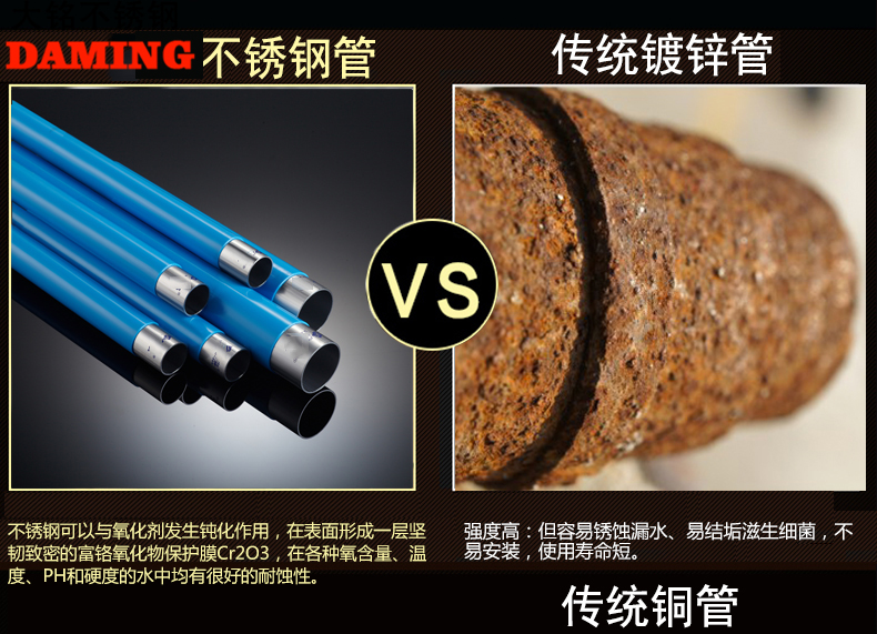 對(duì)供水管來(lái)說(shuō),選用不銹鋼管道是更有利健康的。浸泡水試驗(yàn),各項(xiàng)指標(biāo)均符合國(guó)家有關(guān)飲用水標(biāo)準(zhǔn)要求。不銹鋼飲用水管道內(nèi)壁光滑,長(zhǎng)期使用不會(huì)積垢,不易被細(xì)菌粘污,無(wú)須擔(dān)心水質(zhì)受影響,更能杜絕水的二次污染。